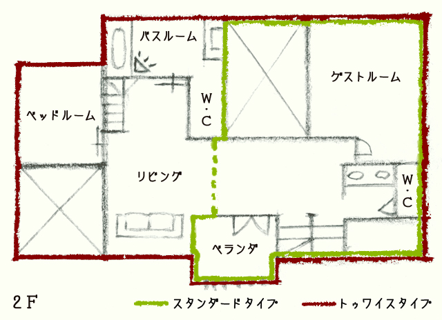 ≪トゥワイスタイプ≫ 定員6名様スタンダードタイプのお部屋と新設しましたお部屋の2部屋をご利用いただけます |